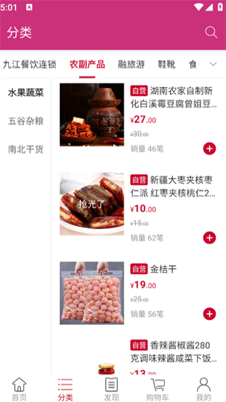 3、底部导航栏分类入口包含农副专区、连锁餐饮、文旅服务等板块