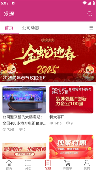 4、发现页集成企业动态与核心功能入口,实现信息集中展示