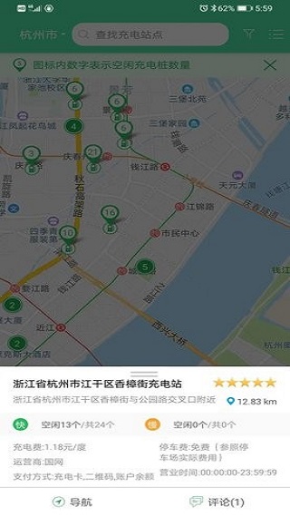 2、基于地理位置智能推荐3个最近充电站点,支持一键导航;