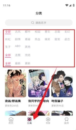 1、启动应用后进入分类专区,快速定位各类漫画资源。