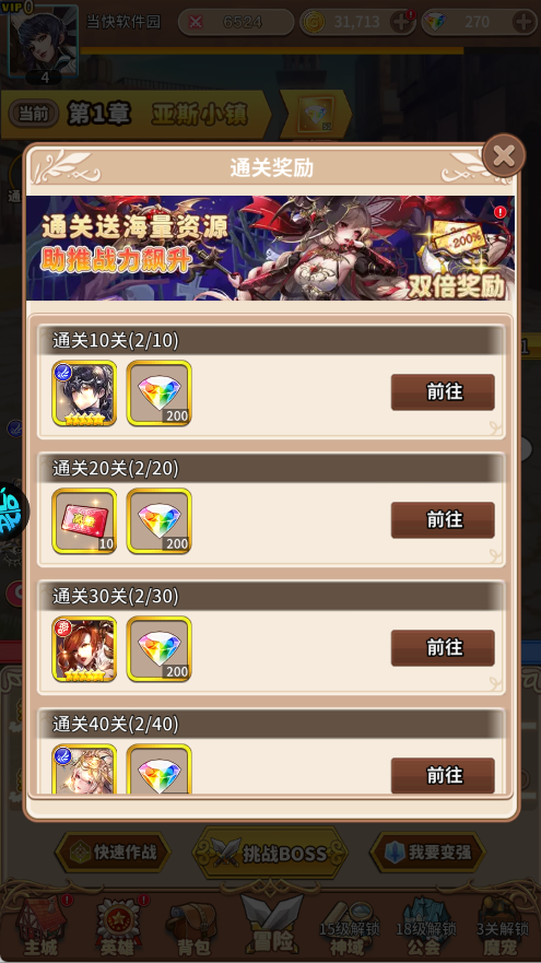 3、通关主线关卡解锁海量资源礼包,助力角色快速成长。