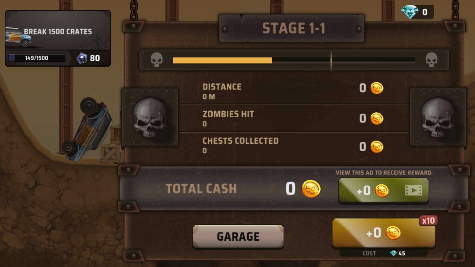 5. 点击界面中的【garage】返回主菜单,拥有足够金币时可选购下方装备;
