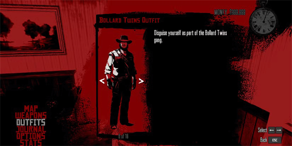 获取方式:需完成五项任务:盗贼码头搜索、麦克法兰牧场巡逻、马蹄铁游戏获胜、活捉波拉德首领、击败亨尼根庄园敌人,最后在盗贼码头裁缝店购买