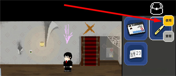 15、站在标记处使用美工刀揭开墙纸下的保险箱
