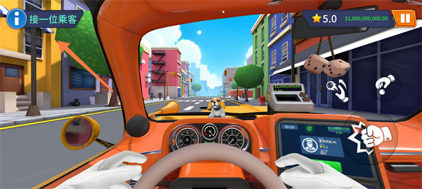 游戏起始时,左上角会出现提示“接一位乘客”。点击绿色的“开始”按钮,便可进入接单流程。