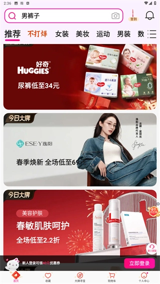 2、提供包含男女装、母婴、家居、美妆等在内的多种商品类型,以满足不同用户在各类生活场景下的需求;