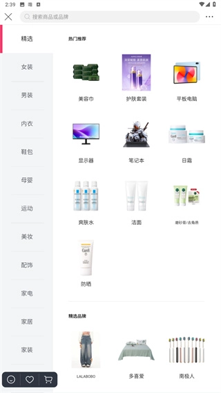 3、同时还拥有多种不同商品的热门推荐以及精选品牌;