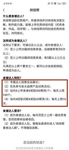 烘焙帮vip体系采用邀请制,仅对优质内容创作者开放。获得「食谱达人」认证需满足以下条件之一: