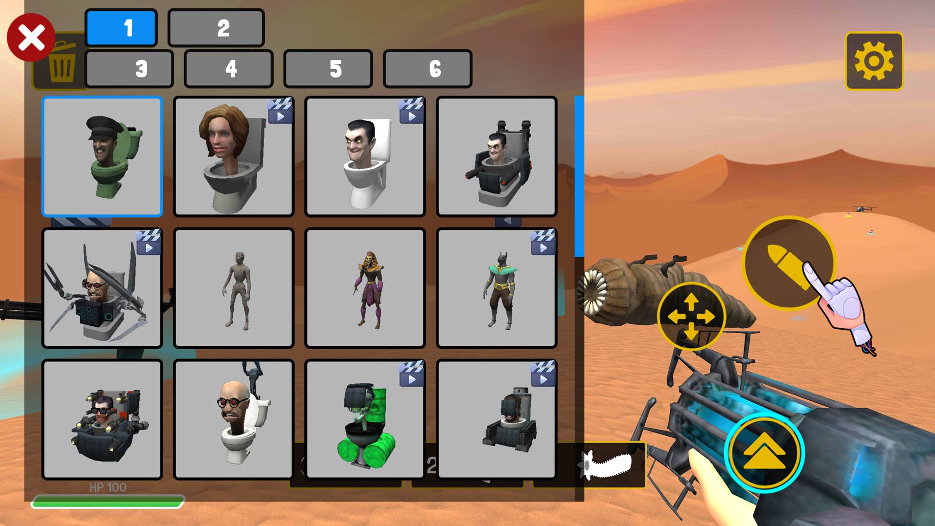 1、选择马桶人或监控人角色进入沙漠战场,运用武器向对手发起趣味射击挑战。