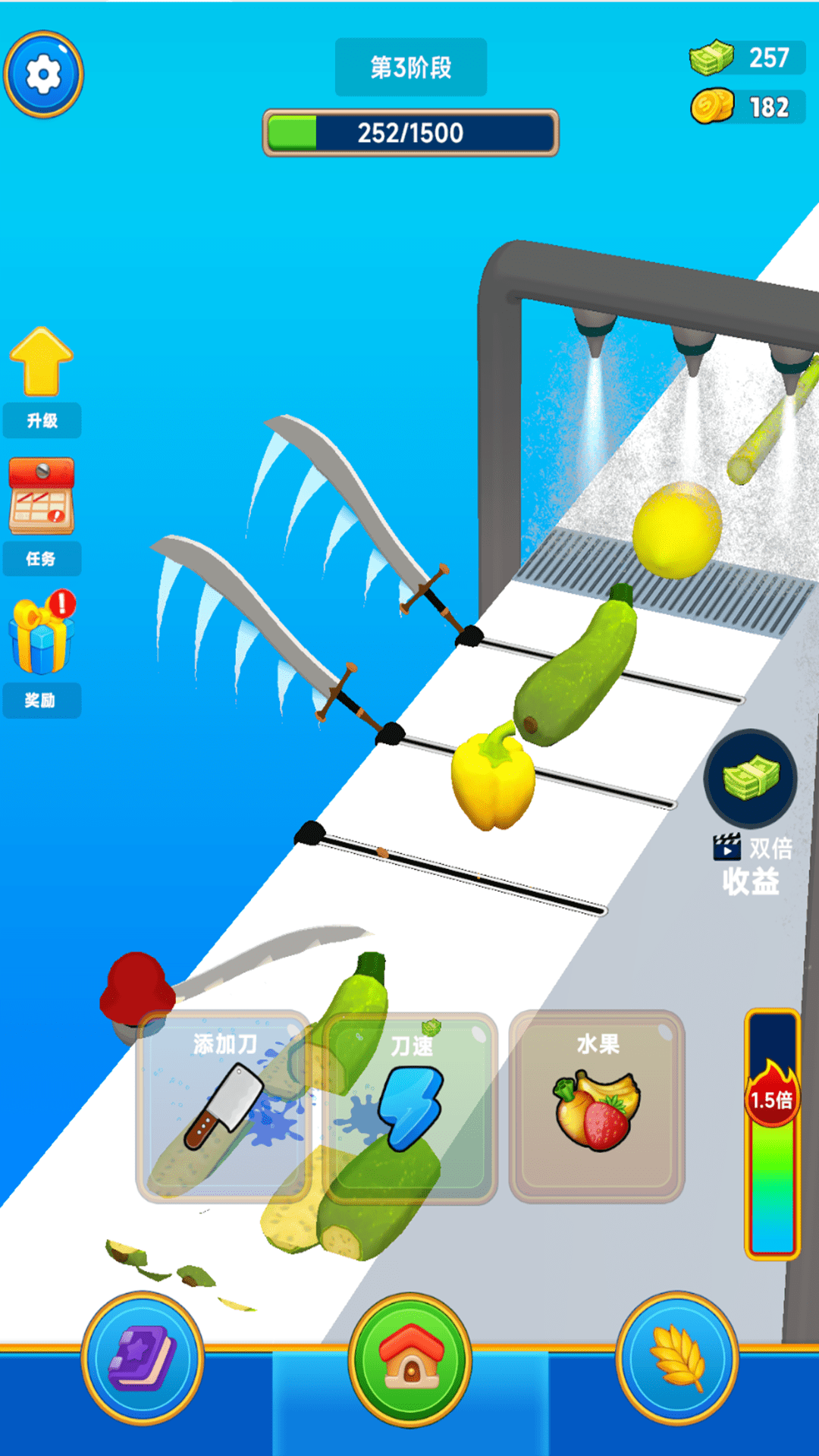 2、先升级能提升速度的刀具属性,快速强化切割能力,降低后续关卡挑战难度。