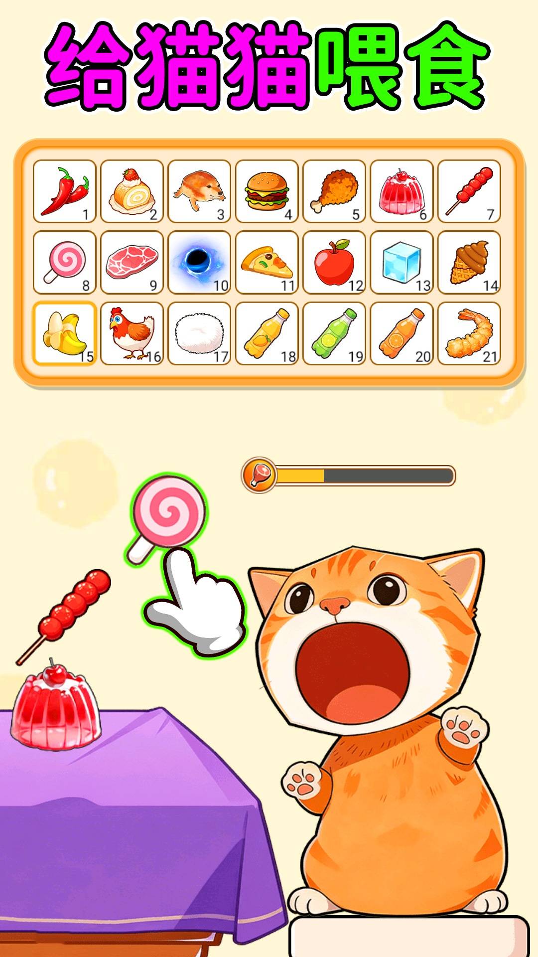 “喂食我最棒”游戏是一款操作简易的喂食模拟趣味游戏。在每一个关卡中,被投喂的目标各不相同,你需依据其喜好挑选食物进行投喂,直至喂饱为止。千万别选错食物,否则会被吐出来,若选错食物的次数过多,挑战便会失败。在轻松投喂的进程中,尽情享受休闲解压的愉悦。
