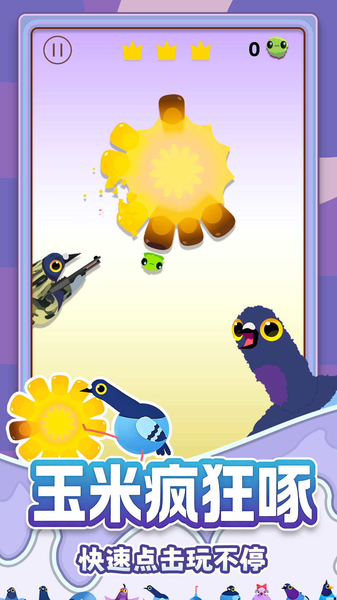 1. 鸽子外观并非单纯装饰:短喙圆眼的新手默认形象适合入门玩家;解锁长喙雨燕皮肤后,判定时间缩短0.1秒,专为高手设计;头戴贝雷帽的艺术家鸽每吃满100颗玉米会随机释放带有音符特效的"艺术排泄物"。