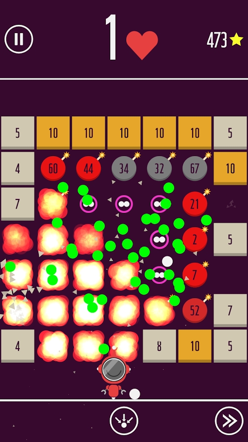 再来一块砖是一款弹射消除游戏,游戏它非常休闲和解压。你需要通过发射一个球击中方块进行消除。方块的数字代表球击中的次数。你也可以使用提升球的攻击力。每次撞击都会消耗更大的数。只要角度刁钻,球就可以无限弹射。