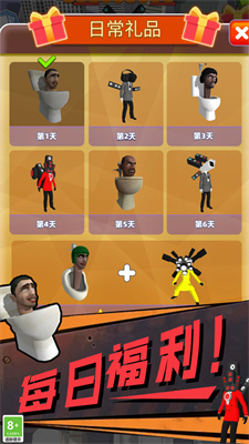 1、独特的合成战斗玩法,组合升级不同的厕所人,打造强大的战斗角色。