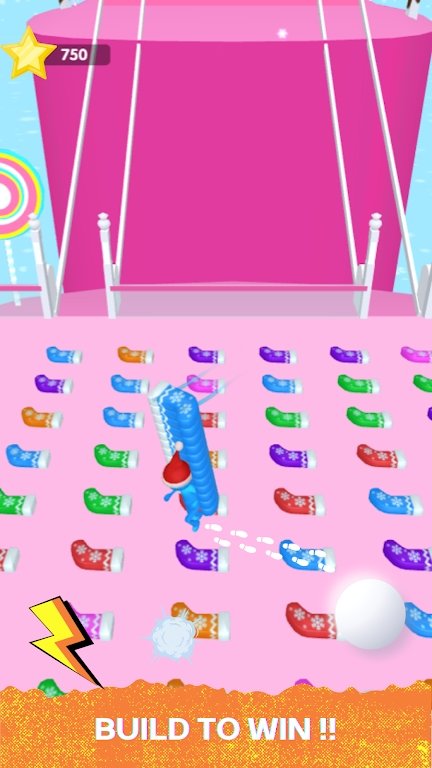 1、玩家需要控制角色跑过各个关卡,收集散落在地图中的圣诞袜,解锁更多道具和奖励。