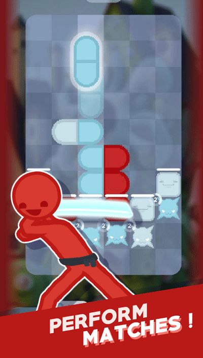 1、将4个相同颜色的药丸连成一排,将它们从网格中消除,并捕获火柴中的细菌以杀死它们!