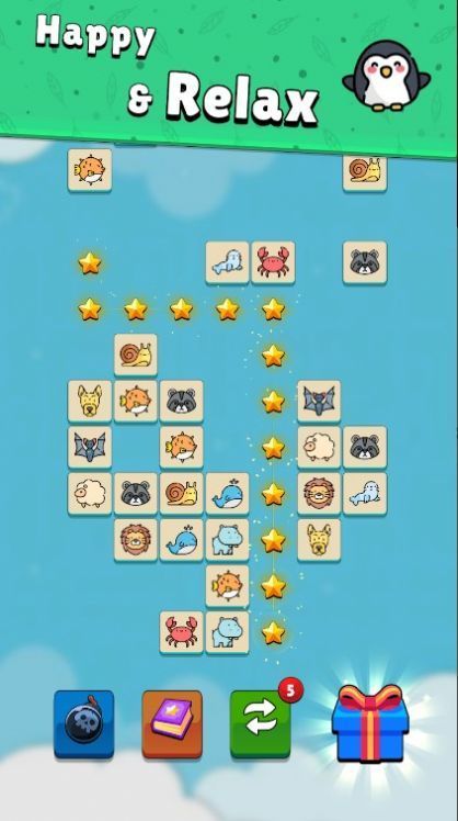 动物园连连看是一款有趣的益智游戏。在游戏中,玩家需要消除具有相同图案的动物方块来完成关卡目标。游戏中有不同主题的动物园场景。玩家需要利用观察和快速反应来连接两个相同的动物块并消除它们。随着游戏的进展,难度逐渐增加,并增加了更多具有挑战性的元素,例如时间限制和特殊道具。丰富多彩的画面和欢快的音效让玩家在解谜的同时享受轻松愉悦的游戏体验。