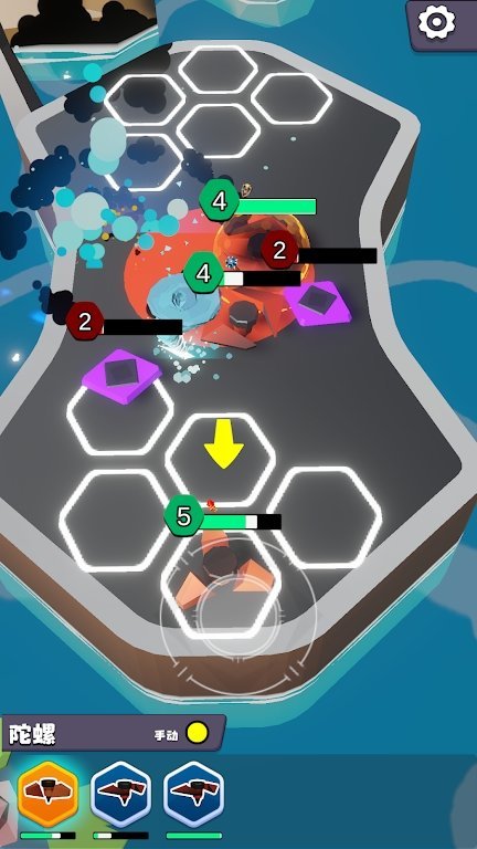 游戏中精致卡通界面打造,带来有趣的合成玩法,将相同的陀螺进行合成,进化为更高级的陀螺,将它们放在竞技场之中,和其他的陀螺展开最为刺激的比拼对决,通过超强的实力来战胜不同的对手。
