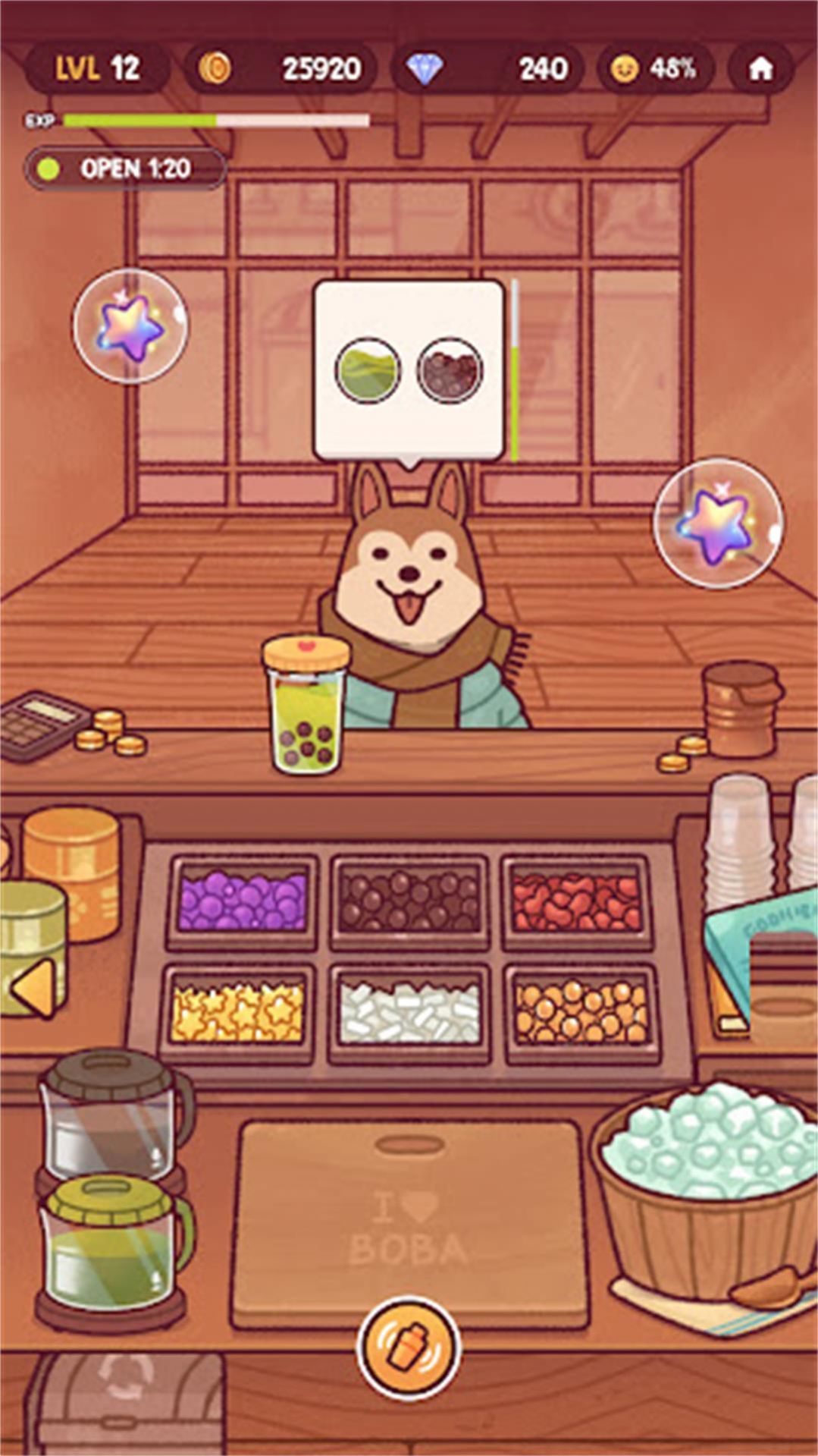 会储存每一位玩家们的游戏进度,玩家会不断的掌握一些经营技巧,只要点击屏幕就能够快速的完成奶茶制作任务。
