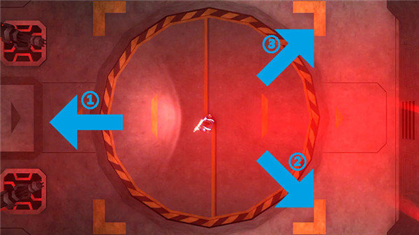 本关卡总共有3处已启动的机枪防御陷阱。并且这个机枪陷阱还是无差别攻击的,此刻我们身上星际巡逻队军官的身份也不管用。所以渡过机枪陷阱的方式就是不能硬拼全力逃跑,但同样是逃,方向不同效果也是天差地别。这里主要讲一下前两处。