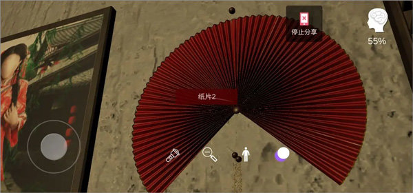 7、转到右边的扇子,放大镜头,获得纸片二;