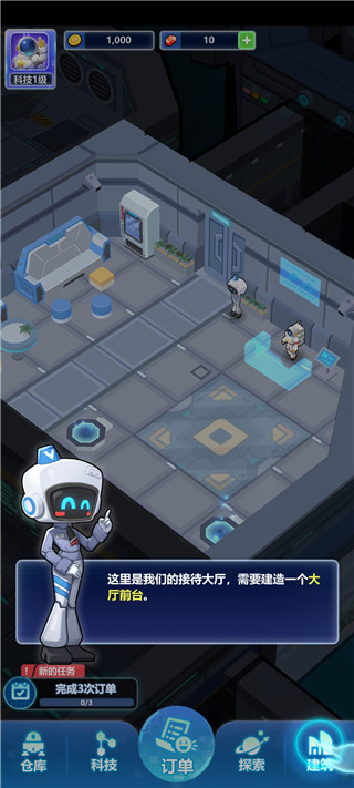 2、根据提示点击建造,进行建造大厅前台;