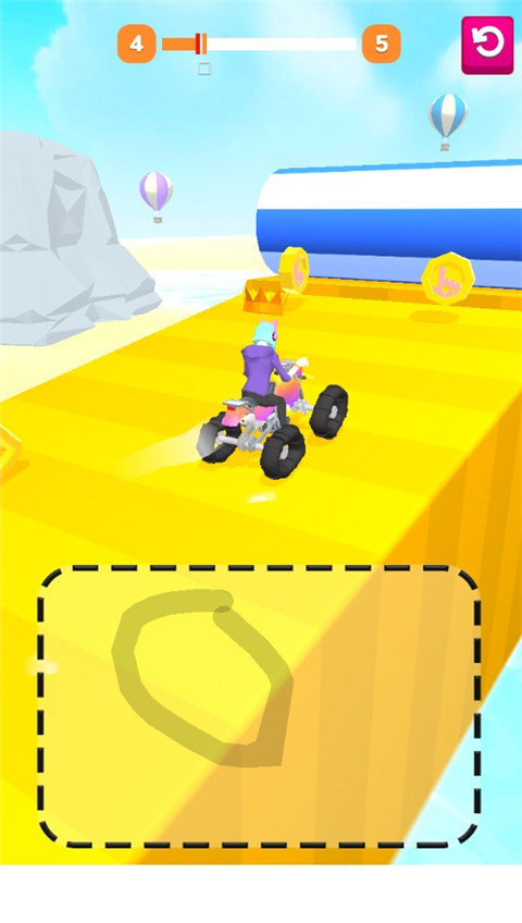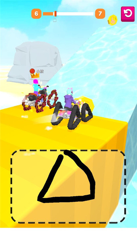 超有趣的竞速比赛正式开始,现在你要通过绘画的方式来弥补车辆残缺的部分,至于如何去画没有任何的限制,你可以根据自己的想象力来,前方的赛道中将会安置很多的机关障碍,如果不小心碰到的话会非常麻烦,中途可自由修改,以最快的速度到达终点处,商店里还有很多不同样式的车和服饰,看看有没有你喜欢的吧!
