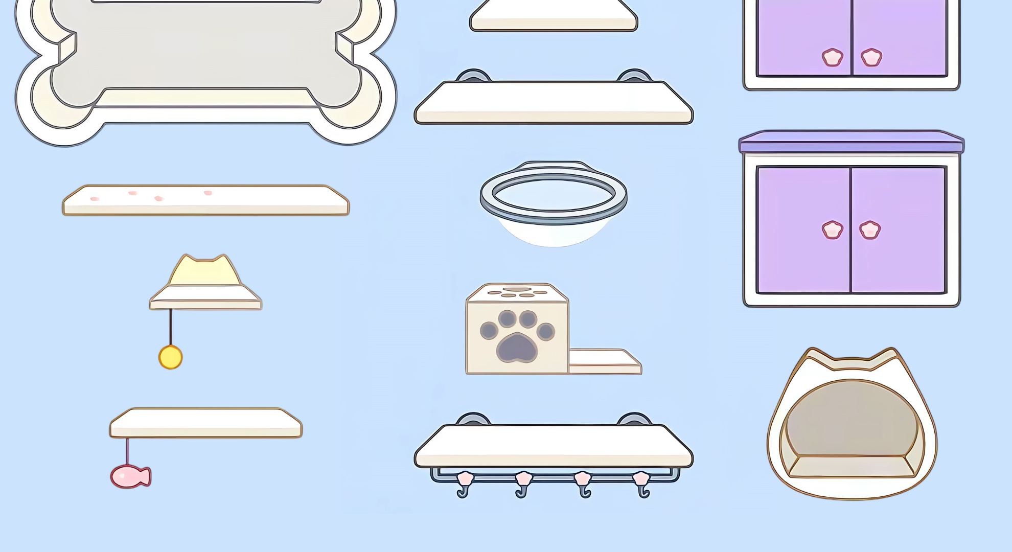 10、置物架的款式也有很多,大家可以尽情给小动物布置房间啦!