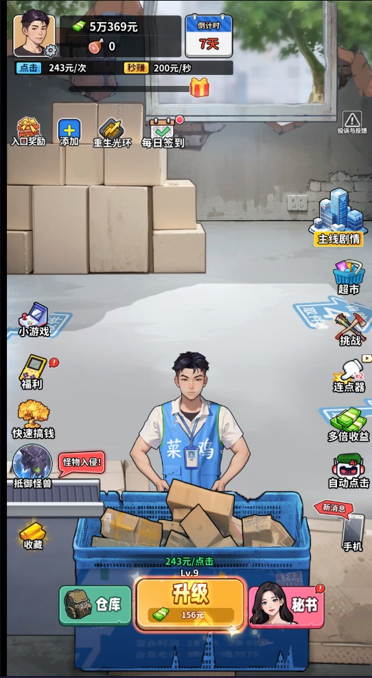 咸鱼逆袭是一款超刺激的末日生存游戏。未来世界文明崩塌,咱们得想尽办法活下去。不断轮回能提升战斗力,升级店铺增加收益。还能邀请同伴组冒险小队哦。而且它能自动点击,解放双手轻松获收益,金币可买道具、培养角色。游戏里武器多样,配合人物技能,能发挥超强力量。爱放置玩法的快来下载呀!