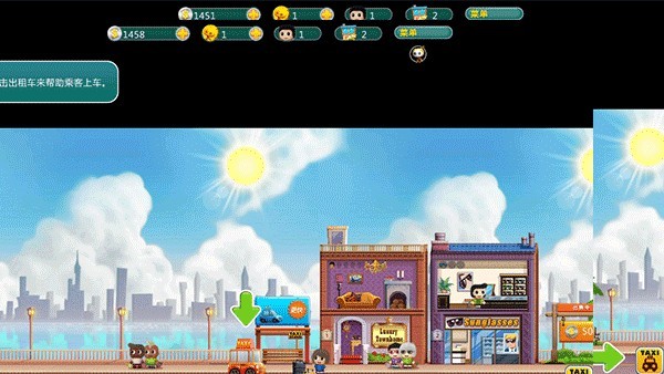 5、 在游戏中,还设计了出租车,在有顾客叫车时,会有声音提示,并在右下角有出租车的图标。