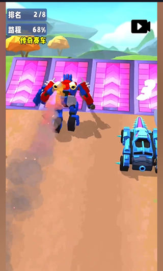 3、匹配玩家实时对战,同场景竞速格斗,比拼操作与养成策略,赢取汽车人战神称号及奖励。