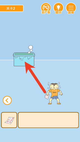 7、拿走纸箱上的香蕉交给右侧角色,获得香蕉皮后设计让父亲滑倒,用收集的箱子垫高书架藏试卷。