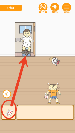 4、在右侧推倒垃圾桶并开启厕所门,取得卫生纸和香蕉,用香蕉引开父亲后趁机递交试卷。