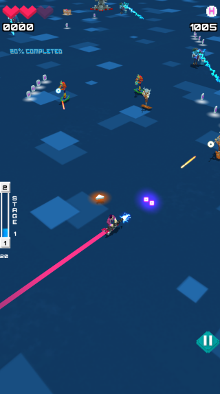 2.你要在5个不同的战场上和邱塔星人战斗,还要支部的解救囚犯并拯救人类,通过两次轻点来导航一旦敌人在你的飞行方向或是火力范围内,你的角色就会自动开火,你要运用新的武器在挑战中对抗敌人;
