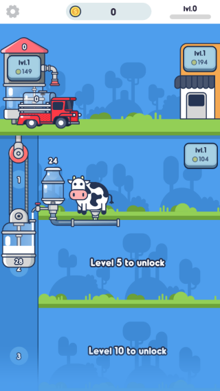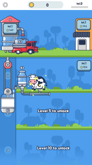 2.通过点击奶牛能够加速产奶的速度,通过点击车辆能够加速灌装速度。