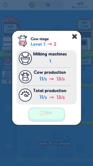 4.提升奶牛等级,能够提升产奶的各项属性,让奶牛产出更多的牛奶。