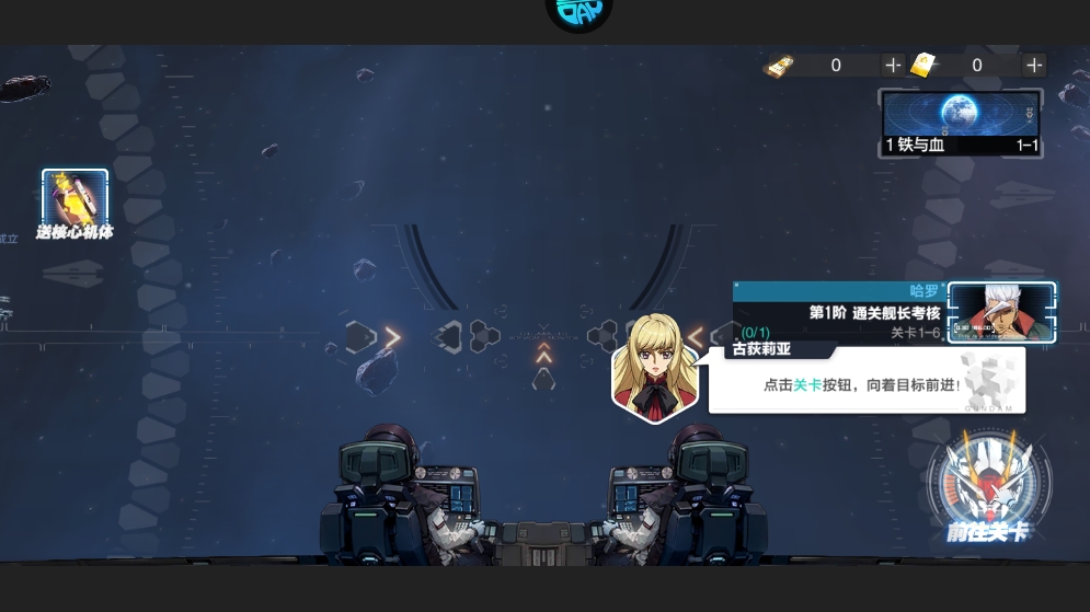 2、进入游戏后跟随指引点击前往第一阶关卡,开启你的首场机甲战斗,感受横版卡牌策略对决的魅力。