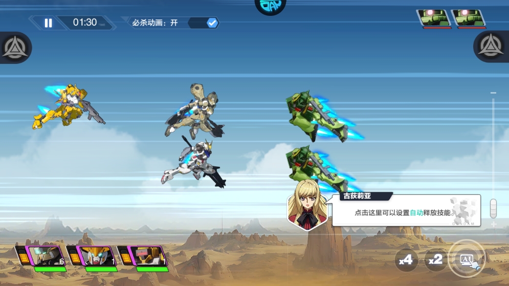 1、炫酷技能特效与动态战斗动画,每一场交锋都带来强烈的视觉冲击,仿佛亲临高达战场。