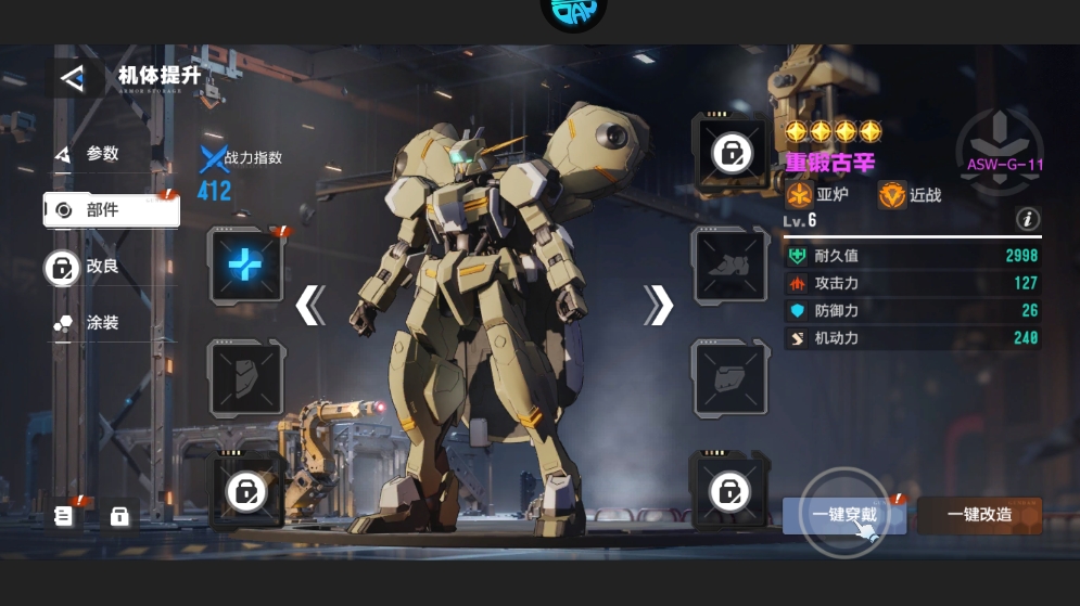 5、战斗结束后可对获得的机体进行提升,通过等级提升、部件强化等方式增强战力,为后续挑战做好准备。