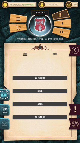 3. 间谍系统是游戏特色玩法,派遣间谍到敌对势力可以获取重要情报,甚至还能策反敌方将领或者破坏对方经济设施。