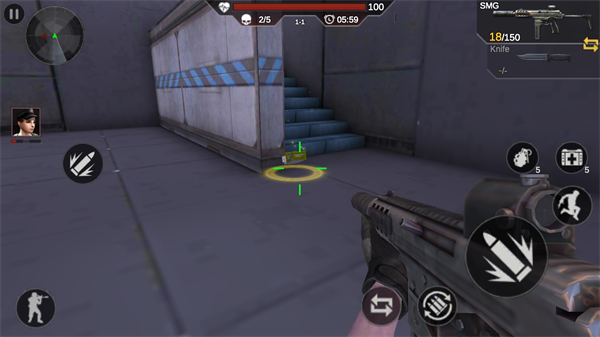 2、在游戏中追界面,左侧滑动屏幕操控角色移动,右侧有射击和切换子弹等按钮;