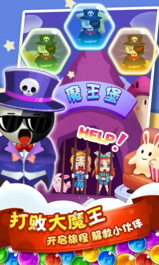1.通过消除泡泡击败敌人、收集资源,灵活使用道具和特效应对复杂关卡,突破魔王设下的重重障碍。