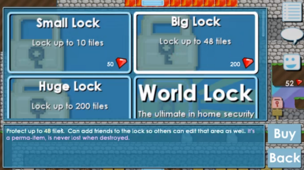 3、根据自身对区域保护的需求,选择合适的锁。合理购买锁来保护自己的领地,防止其他玩家随意编辑。