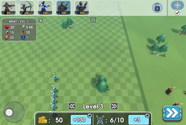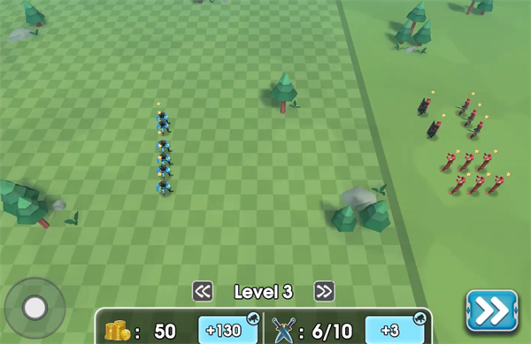 2、你可以派遣全副武装的士兵也可以选择手无寸铁的农民,各种生物也可以不是生物都可以是你选择的单位,只要你敢想没什么是不能对决的。