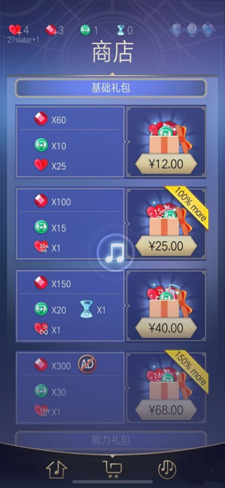 4、进入商店,可购买基础礼包等,用宝石或现金获取游戏道具,提升游戏体验。