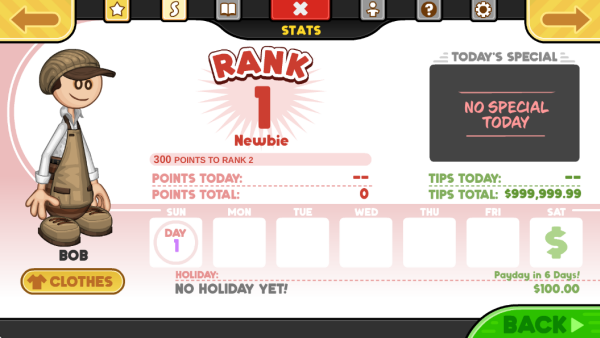 1.如下图所示,游戏将会以天为单位进行,玩家需要保证盈利才能够持续经营咖啡店。