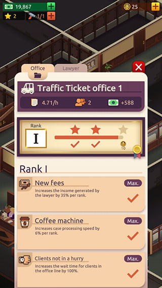 2、不断的去建设自己的事务所,可以去建造出更多的房间,然后招募更多律师;