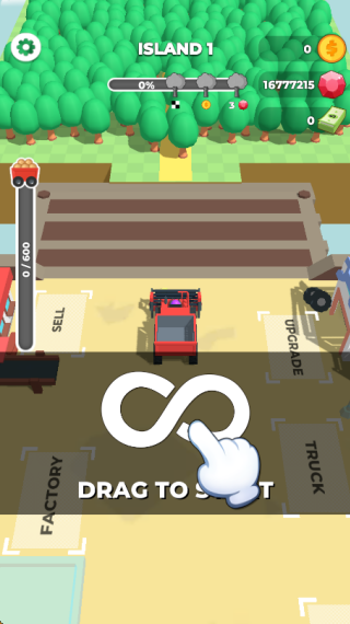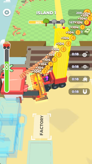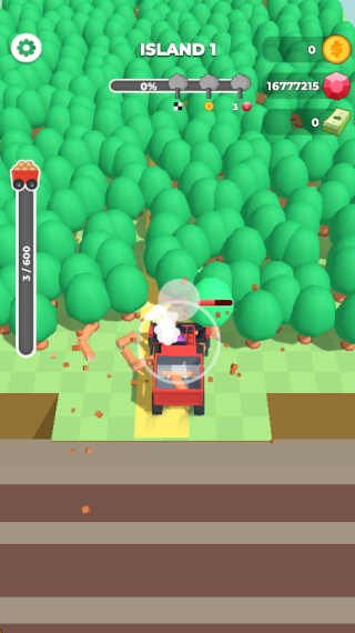 4. 当伐木机容量满后,玩家可驾驶伐木机返回基地,出售收集的木材,所获金币可用于升级伐木机。