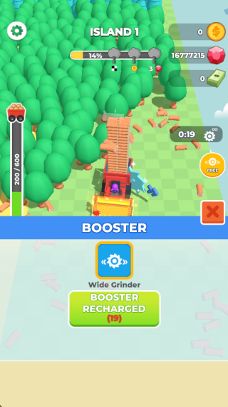 3. 在砍伐树木过程中,会随机掉落各类 buff,收集后可提升伐木机各项性能,进而实现更快速的伐木作业。