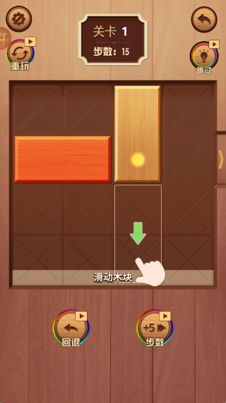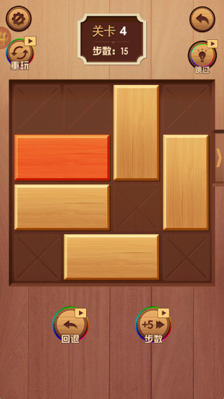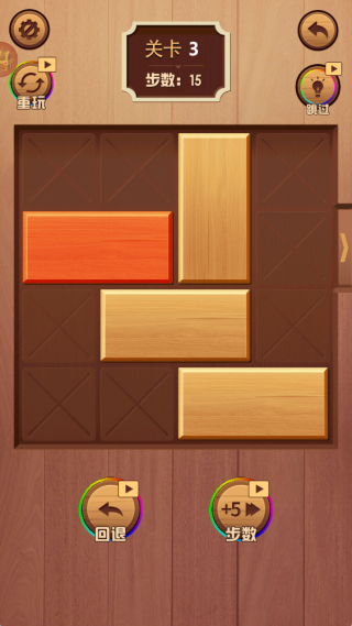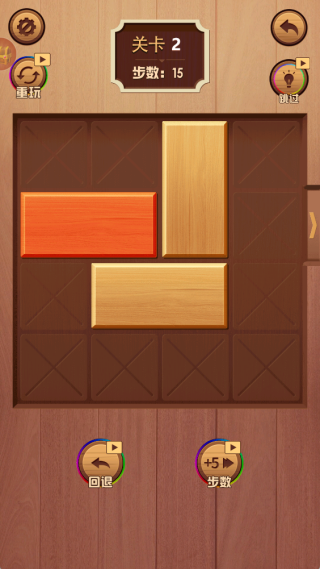 2、每个关卡设有步数限制,玩家要寻得合适的移动顺序,在有限空间内合理移动木块。